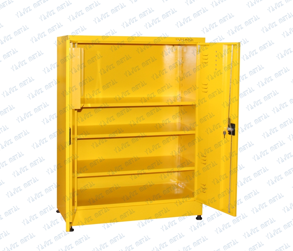 Yavuz Metal Kimyasal Madde Dolabı, laboratuvar, üretim tesisi, bakım alanı ve Ar-Ge birimlerinde kullanılan kimyasal malzemelerin güvenli, düzenli ve standartlara uygun şekilde saklanması için geliştirilmiştir. Gövdesi yüksek dayanımlı DKP çelik sacdan üretilmiştir ve elektrostatik toz boya kaplaması sayesinde kimyasal etkilere, korozyona ve darbelere karşı üstün koruma sağlar.
